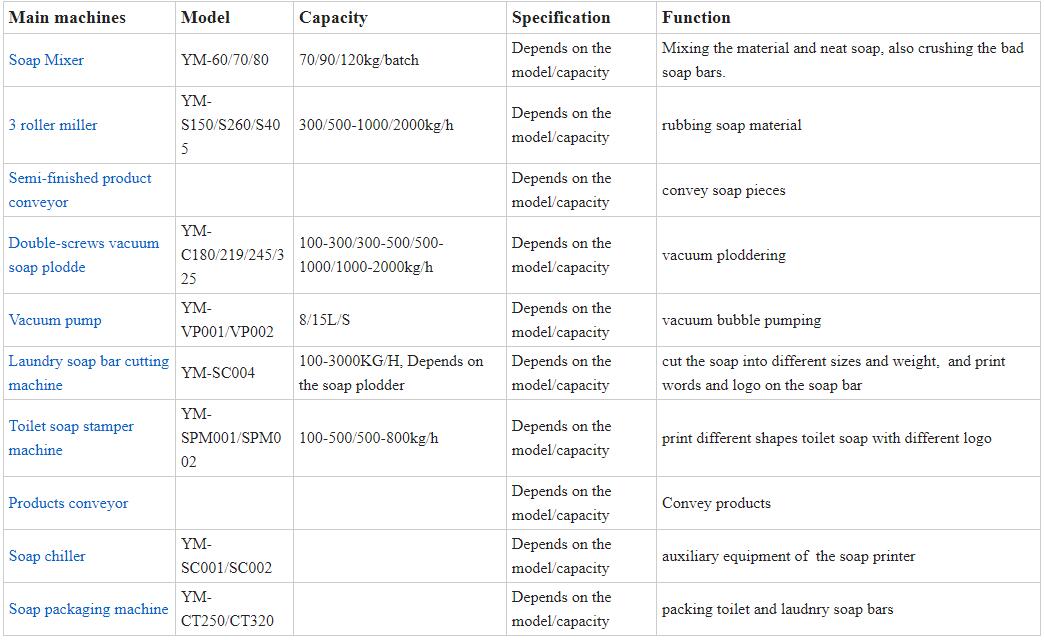 1. The finishing lines of Series for Laundry or toilet and translucent soap bring together all components that are most reliable, most durable, supplied by the most famous vendors in the world.