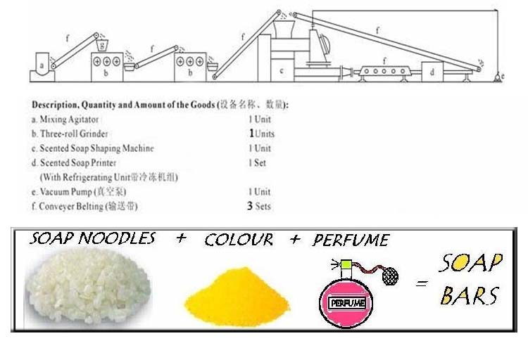 1. This soap production line take soap noodles/soap base(soap bar)/oil/fat/soda as raw materials.