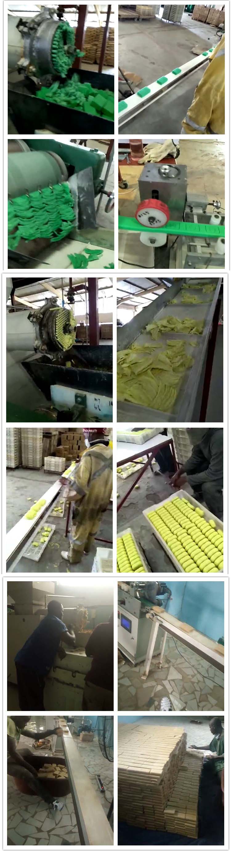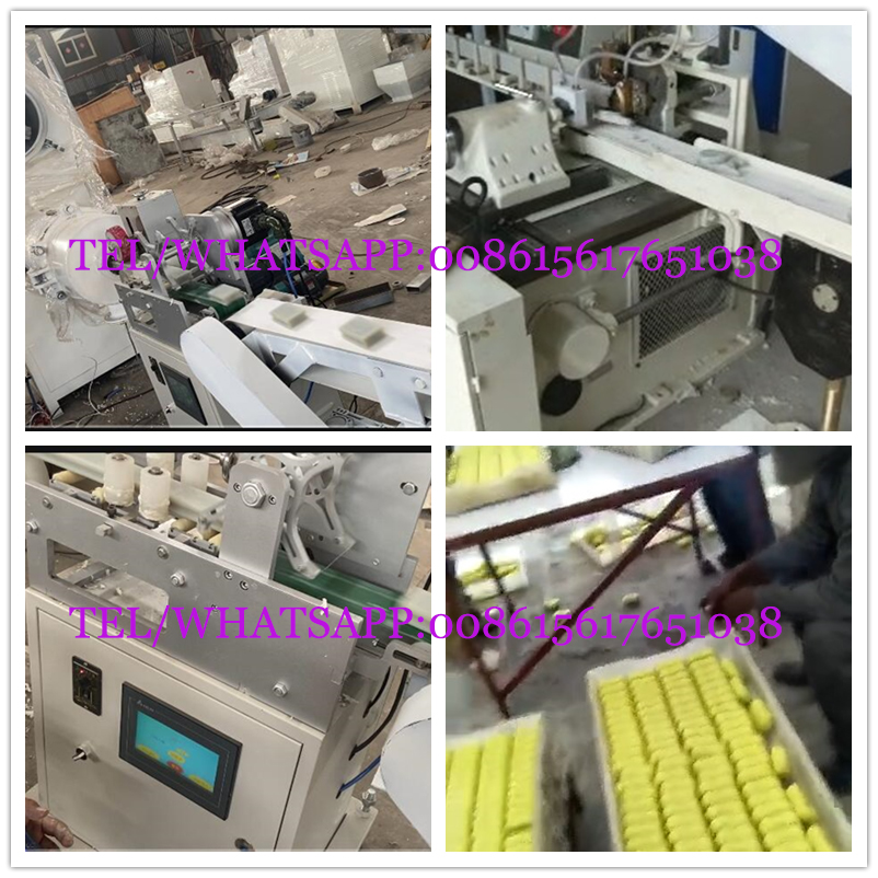 4. Then the long strip soap are cut into the soap bars required size and shape by cutting machine or toilet soap stamper machine